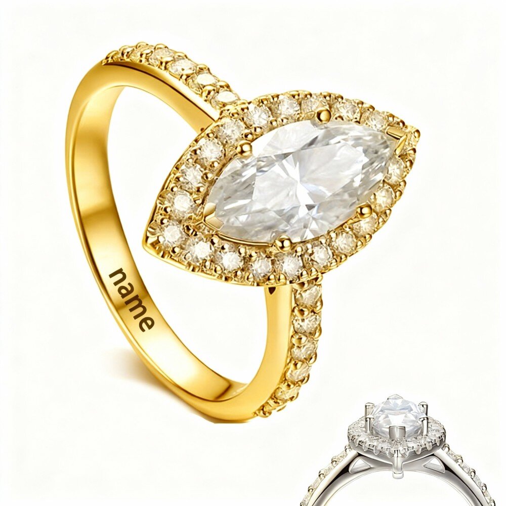 Este anel deslumbrante, feito em Ouro 10K premium, apresenta uma peça central de moissanita em formato marquise de tirar o fôlego, que irradia um brilho e uma intensidade incomparáveis. Ideal para casais, simboliza o amor eterno e o compromisso, tornando-se um presente perfeito para noivados, aniversários ou qualquer momento especial compartilhado com um ente querido. O design elegante garante que este anel complemente qualquer look, realçando seu estilo com um toque de sofisticação e elegância.