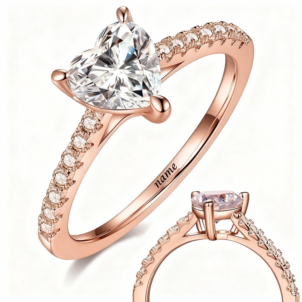 Apresentamos o nosso deslumbrante anel de noivado Moissanite em Rosa Ouro 10K em forma de coração, concebido para casais que desejam uma peça elegante e intemporal que simbolize o seu amor e compromisso eternos.