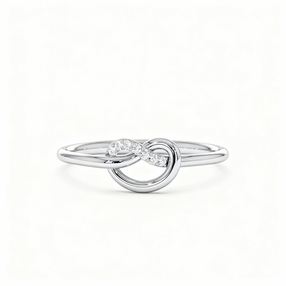 Elaborado com precisão, este excepcional anel combina artesanato clássico com sofisticação moderna, projetado para a mulher contemporânea que valoriza a elegância. O cativante design do nó de amor simboliza afeto profundo e compromisso, tornando-o uma escolha perfeita para noivados, aniversários ou um presente especial para expressar seus sentimentos. Com uma classificação de cor G e clareza SI, o diamante central irradia um brilho espetacular, enquanto as pedras laterais realçam seu apelo cintilante. Cada detalhe é meticulosamente polido para garantir um brilho de alta qualidade que perdura. Este anel não apenas serve como uma peça de destaque, mas também como um lindo lembrete de momentos preciosos em sua vida. Feito de luxuoso Ouro Branco 10K, promete durabilidade enquanto adiciona um toque de elegância a qualquer coleção de joias. Seja usado sozinho ou combinado com outras peças, este anel certamente chamará a atenção e conquistará corações.