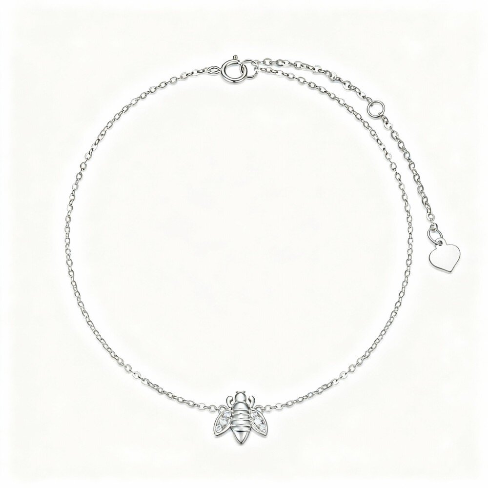 Descubra a elegância da nossa Pulseira de Tornozeleira em Ouro Branco 10K com Charms de Abelha, adornada com Zircônias cintilantes.
