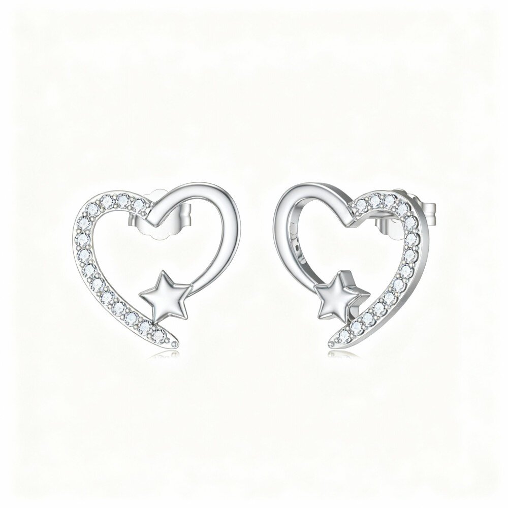 Esses deslumbrantes brincos em forma de coração de Ouro Branco 10K adicionam elegância e charme a qualquer roupa.