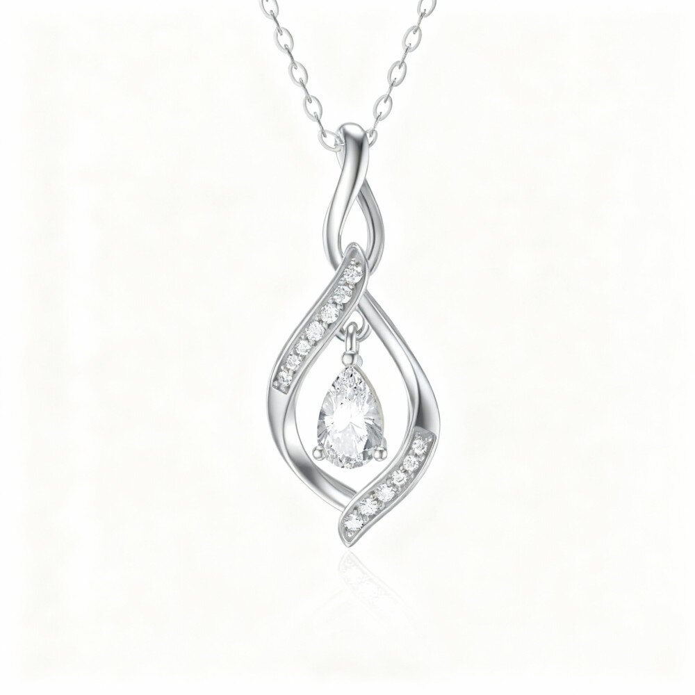 Realce sua elegância com nosso lindo colar de pingente em Ouro Branco 10K que apresenta uma brilhante zircônia cúbica em um design de símbolo do infinito.