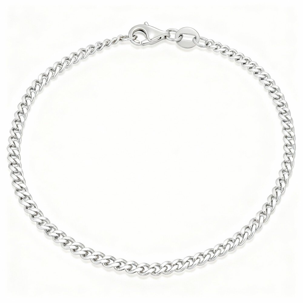 Melhore sua coleção de joias com nossa elegante pulseira Curb Link de Ouro Branco 10K, perfeita para quem ama minimalismo e sofisticação.