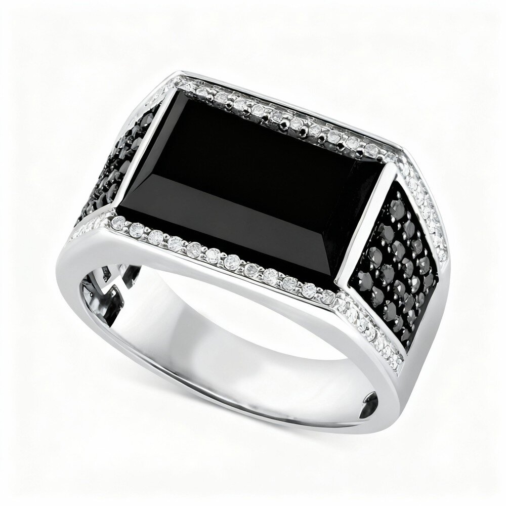 Descubra nosso requintado anel de noivado em Ouro Branco 10K, projetado para homens, com uma impressionante pedra central grande feita de ônix luxuoso. Esta peça única combina sofisticação e estilo com naturalidade, tornando-se a escolha perfeita para quem busca expressar seu compromisso de forma ousada.
