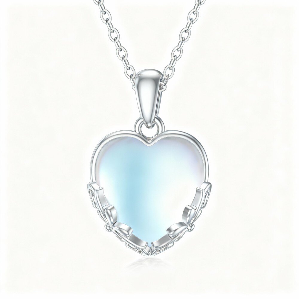 Descubra o charme do nosso requintado colar com pendente de pedra da lua em forma de coração, feito de Ouro Branco de 10 quilates, concebido para elevar o estilo de qualquer mulher com elegância e graciosidade.