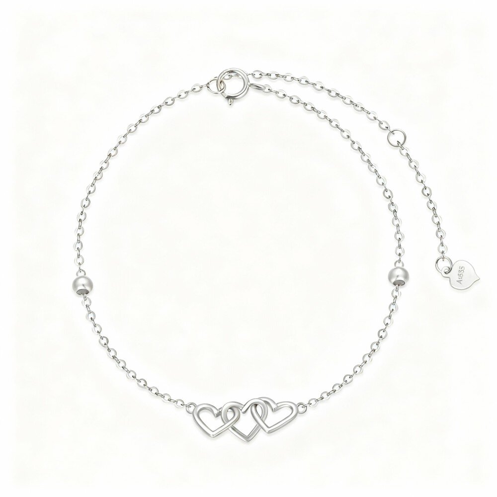 Esta deslumbrante pulseira de charme em Ouro Branco 10K apresenta um design único e elegante com o motivo de corações, simbolizando amor e sofisticação. A abordagem minimalista da pulseira, livre de pedras preciosas, enfatiza a beleza natural do Ouro Branco puro, tornando-a um acessório perfeito para a mulher moderna que valoriza a elegância atemporal em suas joias. Seja em um evento formal ou em uma saída casual, esta pulseira é uma escolha ideal que complementa qualquer roupa. Seu delicado artesanato e estilo luxuoso garantem que será uma peça preciosa em sua coleção por muitos anos. Abrace a simplicidade e o encanto desta pulseira requintada, projetada para elevar sua elegância e causar uma impressão duradoura em qualquer ocasião.
