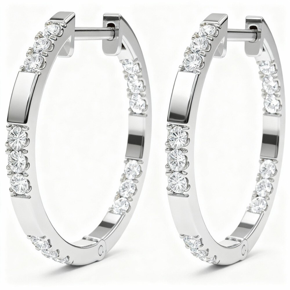 Descubra nossos magníficos brincos de argola em Ouro Branco 10K e diamantes, projetados para elevar seu estilo com facilidade.
