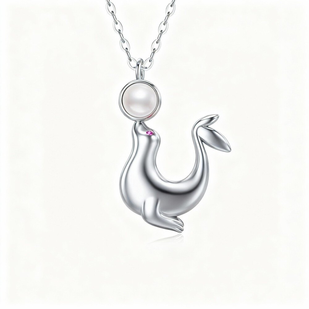 Experimente sofisticação com nosso Colar Pendente em Ouro Branco 10K, que apresenta uma impressionante pérola abraçada por um lindo design de leão marinho, ideal para mulheres que valorizam peças luxuosas.
