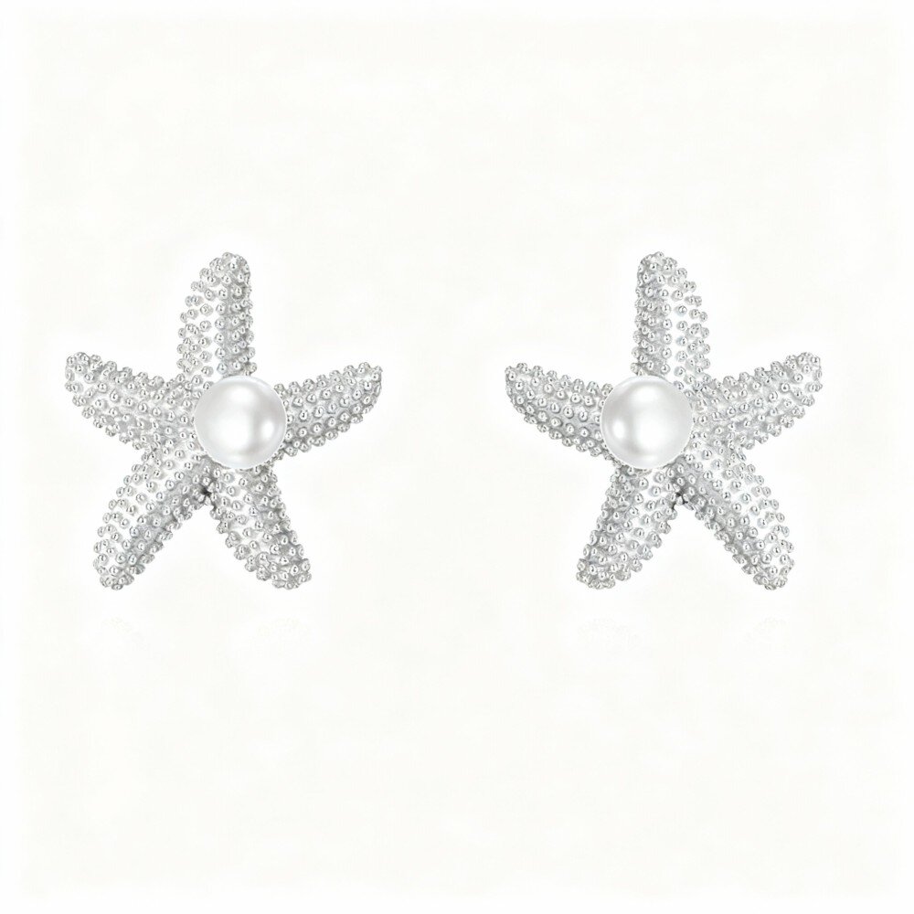 Descubra nossos impressionantes brincos de Ouro Branco 10K com uma pérola brilhante e um design elegante de estrela.