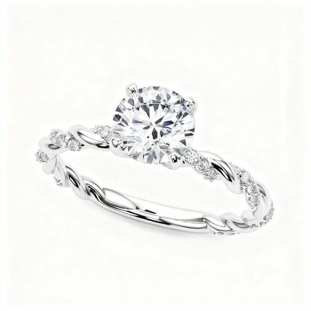 Feito à mão em Ouro Branco 10K brilhante, este anel de noivado apresenta uma impressionante peça central de Moissanite em formato circular que deslumbra a cada movimento. Seu design atemporal é feito sob medida para a mulher e pode ser personalizado com uma gravação exclusiva, acrescentando um toque sincero a este símbolo de compromisso. Como casal, celebrem sua jornada juntos com um anel que captura beleza e sentimentalismo.