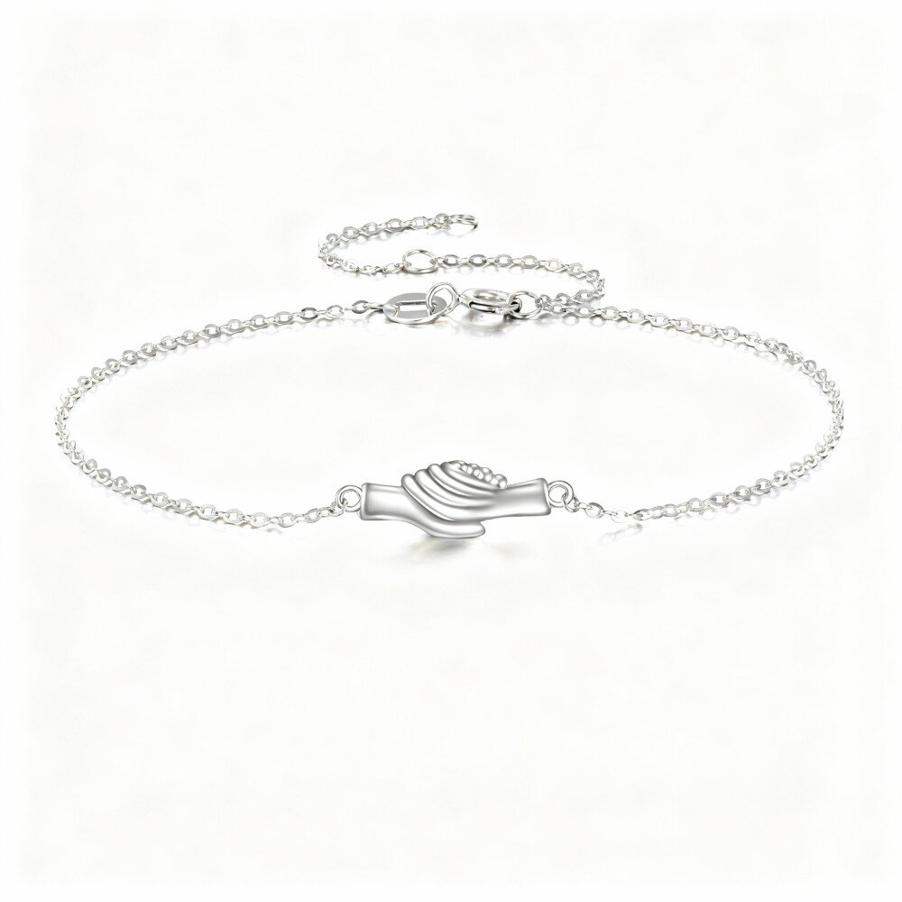 Fabricada em Ouro Branco de 9K de alta qualidade, esta pulseira com pingente apresenta um motivo significativo "Hold Hands", tornando-a um presente perfeito ou um acessório pessoal para celebrar ligações. O design minimalista da pulseira, sem pedras, garante que complementará qualquer roupa, proporcionando um toque sofisticado de Ouro Branco, ideal para uso quotidiano ou ocasiões especiais.