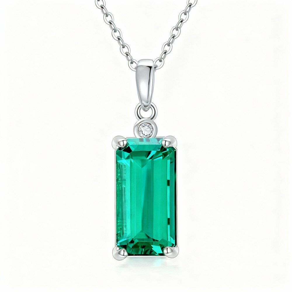 Descubra a elegância incomparável com nosso pingente de Ouro Branco 18K, com uma esmeralda em formato quadrado princesa e diamantes cintilantes, criado para sofisticação.